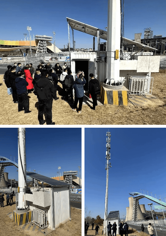 中國鐵塔北京公司的工作人員現(xiàn)場講解首鋼大跳臺通信基站的智能直流疊光系統(tǒng)工作原理及關鍵技術。作為新能源應用的試點站,光伏發(fā)電量可占到該基站全年能耗的10%。