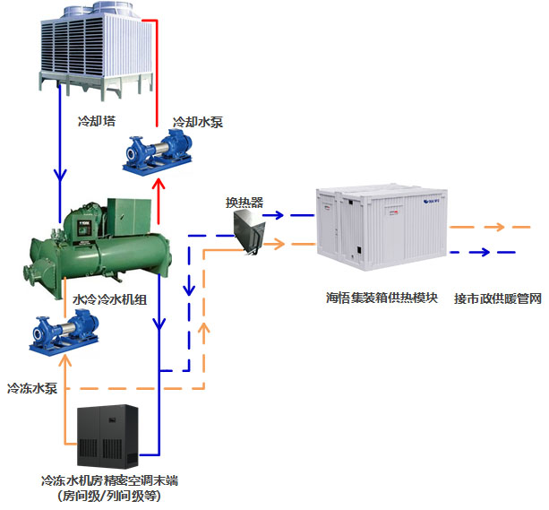 圖1 機(jī)房冷凍水側(cè)余熱回收供暖原理