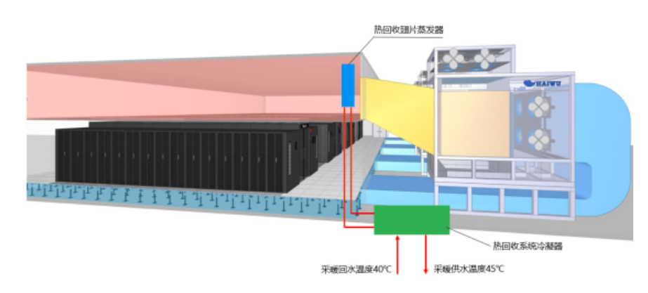 住房城鄉(xiāng)建設(shè)部印發(fā)的《綠色數(shù)據(jù)中心建筑評價技術(shù)細(xì)則》指出:數(shù)據(jù)中心輔助區(qū)和周邊區(qū)域有供暖或生活熱水需求時,宜設(shè)計(jì)能量綜合利用方案,回收主機(jī)房空調(diào)系統(tǒng)的排熱作為熱源,宜采用熱泵機(jī)組回收排熱。