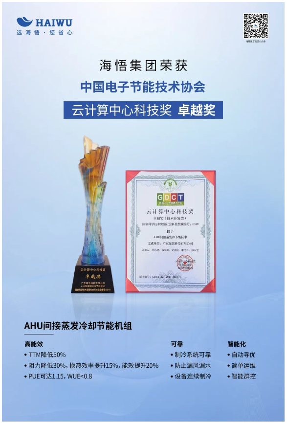 在數(shù)據(jù)中心年會“云計算中心科技獎”頒獎典禮上,海悟AHU間接蒸發(fā)冷卻節(jié)能機組憑借其優(yōu)異的產(chǎn)品優(yōu)勢,斬獲“云計算中心科技獎-卓越獎”。同時,大會還舉行了數(shù)據(jù)中心節(jié)能技術(shù)委員會副會長授牌儀式,海悟被授予副會長單位。
