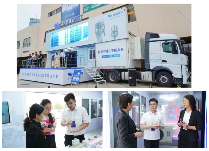 年會召開期間,海悟展車同時開放參觀,展車以 “綠色、低碳、節(jié)能” 為主線,直觀呈現(xiàn)了海悟四大應(yīng)用場景解決方案及產(chǎn)品:數(shù)據(jù)中心、通信基站、清潔能源及儲能場景。現(xiàn)場向嘉賓詳細介紹了海悟解決方案和產(chǎn)品,讓大家零距離感受海悟最新產(chǎn)品和技術(shù)。