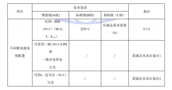 國標GB50174-2017《數(shù)據(jù)中心設計規(guī)范》中對于A、B、C三級數(shù)據(jù)中心不間斷電源系統(tǒng)架構的具體要求如下: