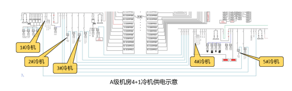 C級機房無冷機末端切換要求;若C級機房改B級、A級機房,則部分冷機需做末端互投,以保證在一個變電所完全斷電時,另一個變電所可以帶載滿足機房冷卻工況的全部冷機。