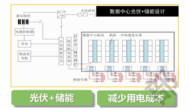 項目可根據(jù)當?shù)厍闆r增加光伏儲能一體化設備,光伏、谷電、平電為儲能系統(tǒng)充電,峰電時段儲能系統(tǒng)放電,減少機房用電成本。