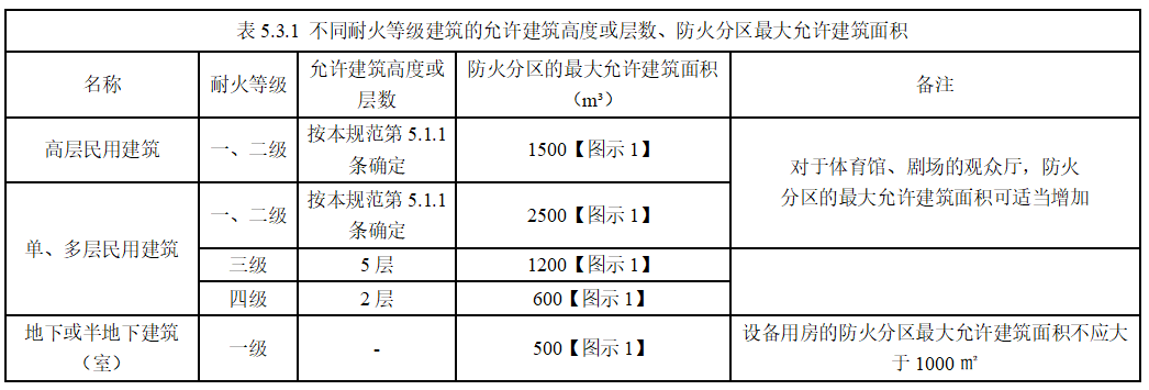 建筑內(nèi)劃分防火分區(qū)面積如下表所示:
