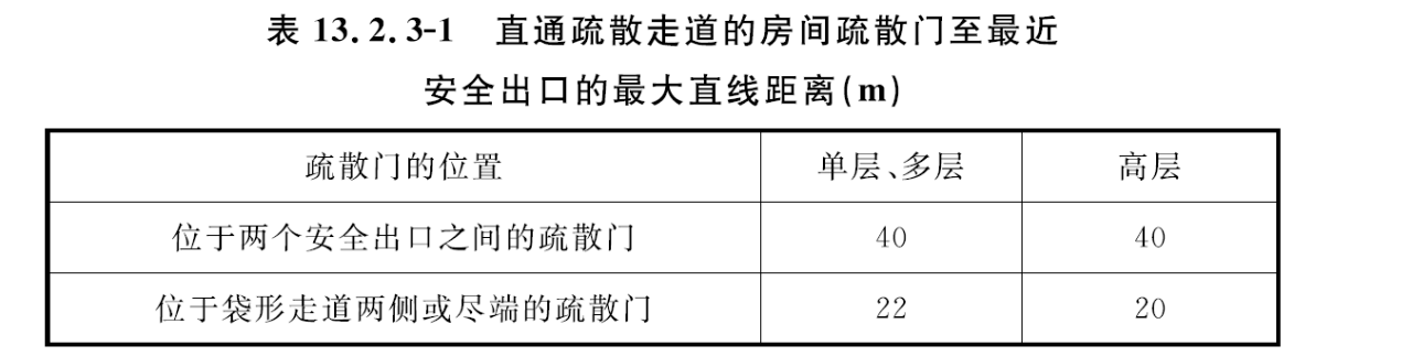 當數(shù)據(jù)中心按照民用建筑設(shè)計時,直通疏散走道的房間疏散門至最近安全出口的直線距離不應(yīng)大于表 13.2.3-1的規(guī)定各房間內(nèi)任一點至房間直通疏散走道的疏散門的直線距離不應(yīng)大于表 13.2.3-2的規(guī)定。建筑內(nèi)全部采用自動滅火系統(tǒng)時,采用自動噴水滅火系統(tǒng)的區(qū)域,安全疏散距離可增加25%。