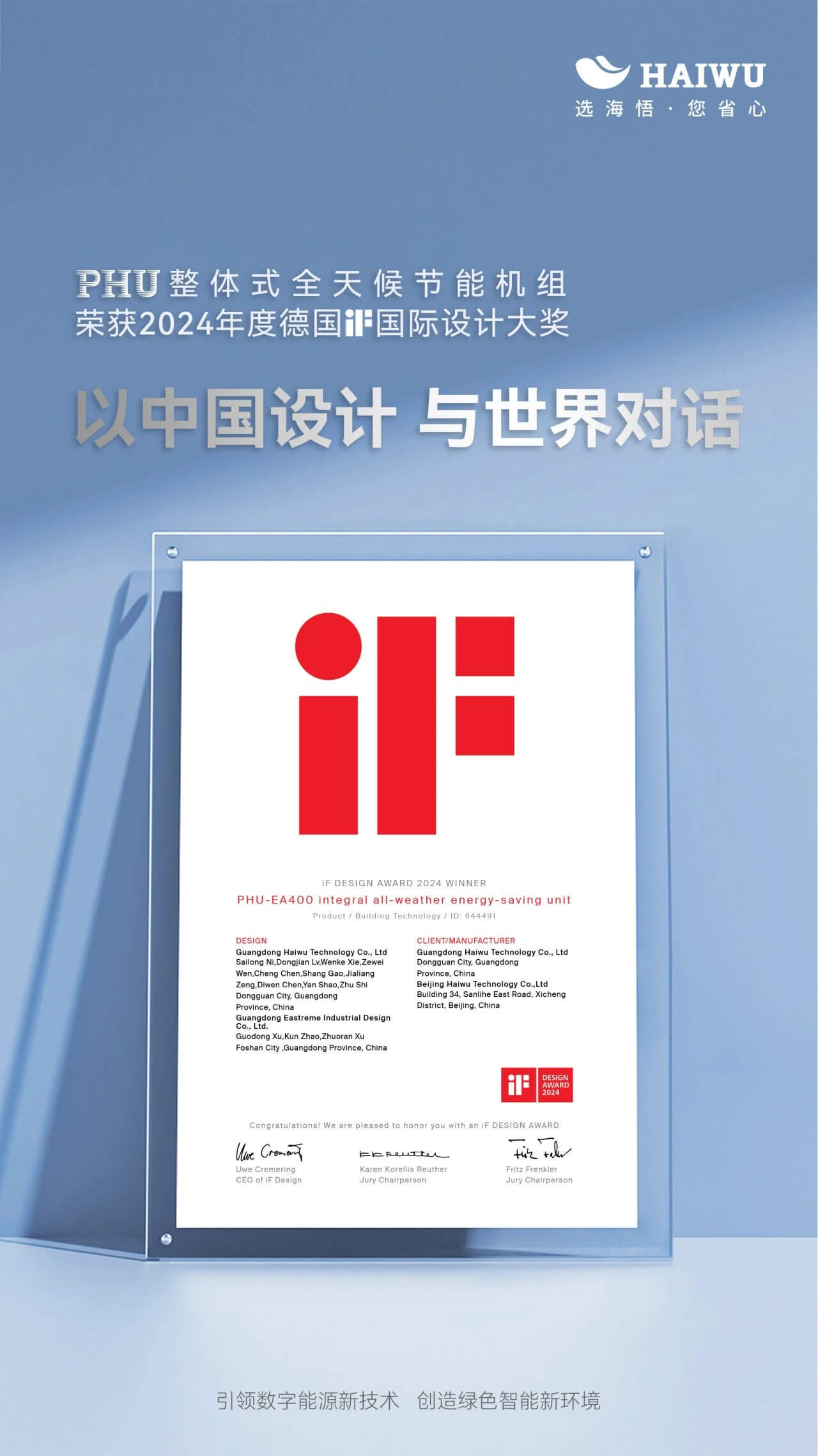 海悟PHU整體式全天候節(jié)能機(jī)組憑借出色的工業(yè)設(shè)計(jì)和創(chuàng)新實(shí)力,從來自72個(gè)國家與地區(qū)的近萬件作品中脫穎而出,一舉斬獲2024年德國iF設(shè)計(jì)獎(jiǎng)!