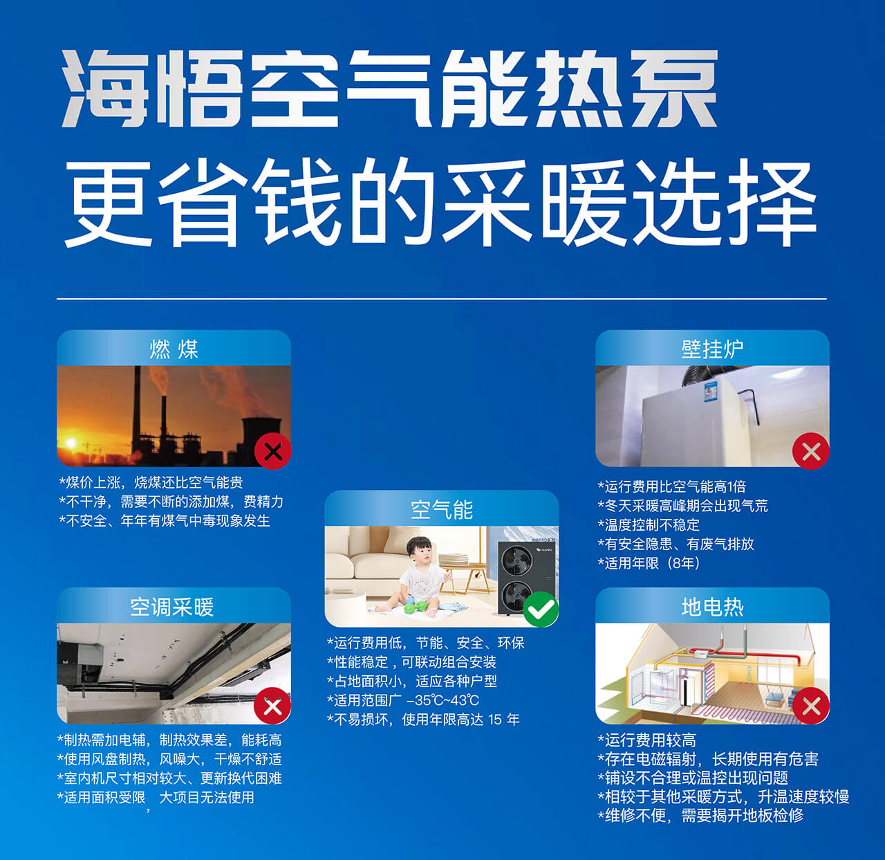 壁掛爐采暖方式在運行費用上比空氣能高出1倍,且在采暖高峰期容易出現(xiàn)氣荒現(xiàn)象。此外,壁掛爐采暖還存在溫度控制不穩(wěn)定、廢氣排放等安全隱患。海悟空氣能熱泵采用智能控制系統(tǒng),能夠實現(xiàn)精準的溫度控制,同時無廢氣排放,讓您安心享受溫暖生活。