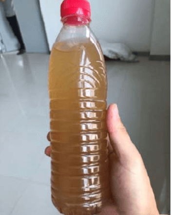 筆者結(jié)合兩種冷卻塔實(shí)際運(yùn)行情況,對(duì)比分析兩者的優(yōu)缺點(diǎn)。閉式冷卻塔由于冷卻水不與外界環(huán)境直接接觸,水質(zhì)易于控制是其最大的優(yōu)點(diǎn),也是很多設(shè)計(jì)師的優(yōu)先選擇。但在實(shí)際項(xiàng)目落地過程中發(fā)現(xiàn),閉式冷卻塔體積大占地面積多,價(jià)格較高,同等設(shè)計(jì)工況下閉式塔要比開式塔價(jià)格高3倍~5倍;尤其是數(shù)據(jù)中心行業(yè)對(duì)設(shè)備品牌比較注重,使得閉式冷卻塔占了不小比例的投資成本。其次,對(duì)于北方寒冷地區(qū)如果使用閉式冷卻塔,管路中還需要投加乙二醇,乙二醇屬于有機(jī)物,容易滋生細(xì)菌微生物;長(zhǎng)時(shí)間運(yùn)行后,乙二醇水溶液如果控制不好易被氧化,形成羧酸等,腐蝕管道和換熱盤管[8-9],圖 7 是某項(xiàng)目閉式塔加乙二醇運(yùn)行后的水質(zhì),已經(jīng)有明顯的腐蝕。另外,閉式冷卻塔由于利用水的噴淋進(jìn)行熱交換,多增加一個(gè)耗電設(shè)備噴淋泵;同時(shí),對(duì)于添加乙二醇的冷卻水,由于乙二醇比熱容較低為2.35kJ/kg·℃,只有水的一半左右,導(dǎo)致系統(tǒng)循環(huán)換熱效率降低,根據(jù)不同乙二醇添加比例,系統(tǒng)運(yùn)行功耗增加約10%~20%。如果能權(quán)衡應(yīng)對(duì)好如上優(yōu)缺點(diǎn),閉式塔將會(huì)是一個(gè)系統(tǒng)運(yùn)行良好的選擇。