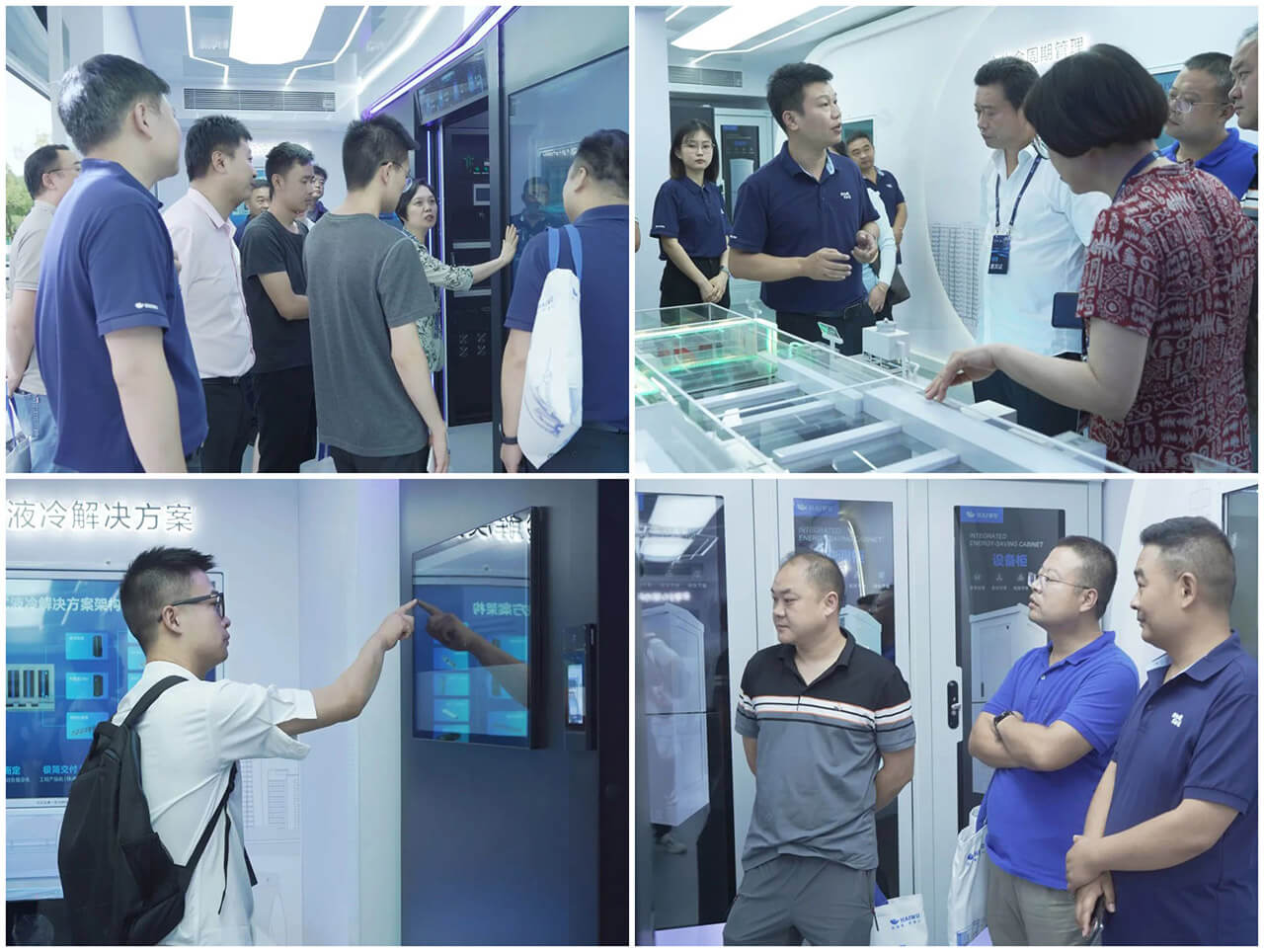 在展車參觀環(huán)節(jié),參會嘉賓就先進產(chǎn)品技術(shù)與海悟進行深入的探討交流。尤其是在本次巡展全新升級亮相的液冷微模塊HyperBlock2000-LW吸引了大批嘉賓的關(guān)注和討論。