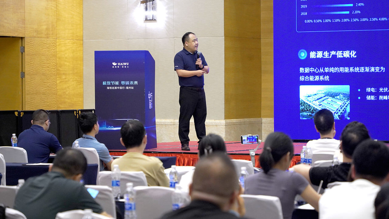 活動(dòng)還設(shè)置了多場(chǎng)干貨滿滿的分享環(huán)節(jié)。產(chǎn)品中心高層吳曉林深入分析了“雙碳背景下關(guān)鍵基礎(chǔ)設(shè)施能效提升的策略與思考”,為嘉賓們提供了寶貴的思路與建議。而產(chǎn)品經(jīng)理謝恩則揭秘了海悟數(shù)據(jù)中心超低PUE的創(chuàng)新實(shí)踐,展示了中大型溫控產(chǎn)品的卓越性能。