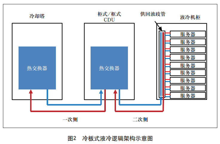 冷板式液冷技術(shù)的邏輯架構(gòu)如圖 2 所示。其主要組件如下。