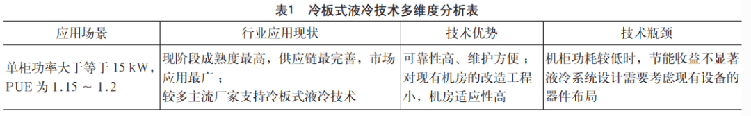 從應(yīng)用場景、行業(yè)應(yīng)用現(xiàn)狀及技術(shù)本身的優(yōu)劣勢等多個方面對冷板式液冷技術(shù)進行分析,具體分析結(jié)果見表一。