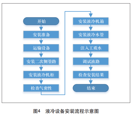針對采用冷板式冷卻方式的液冷設(shè)備及機柜的安裝,流程如圖4所示。
