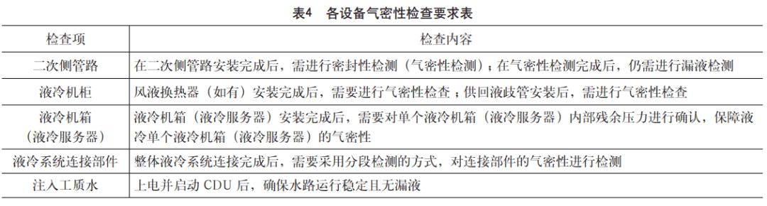 主設(shè)備安裝前,需要對CDU及二次側(cè)管路的氣密性進行檢查,進行泄露檢測與干預(yù)。減少泄漏的主要方法是采用穩(wěn)健的泄漏預(yù)防策略。同時,在實際設(shè)備安裝操作中,需要制定完善的泄漏管理計劃,管理計劃包括泄漏檢測和干預(yù),且需要滿足數(shù)據(jù)中心的設(shè)施運行要求。