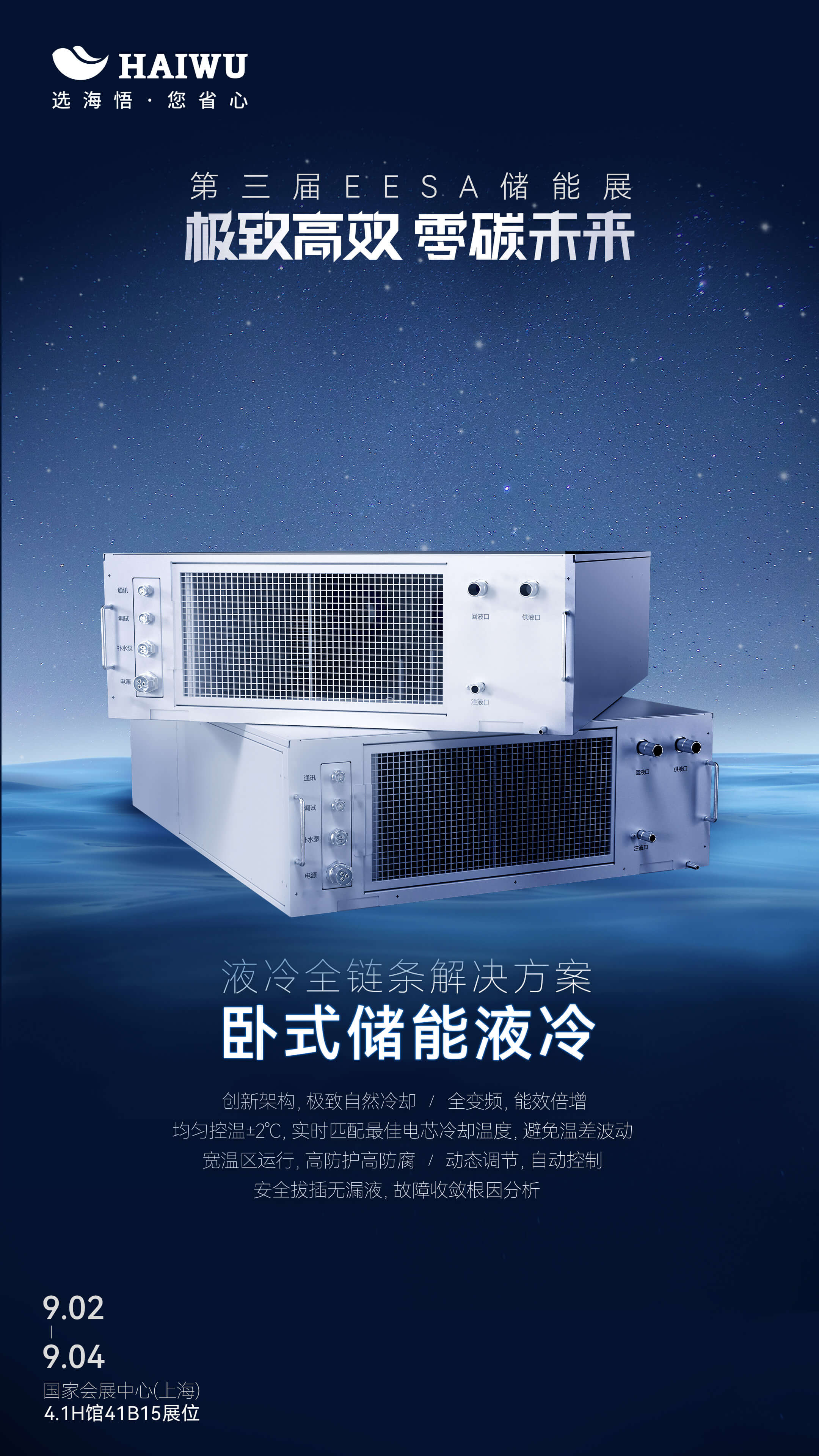 在這個金秋送爽的季節(jié)里,全球儲能行業(yè)的目光即將聚焦于東方明珠——上海。隨著第三屆EESA儲能展的日益臨近,一場關(guān)于綠色碳生態(tài)與智能儲能技術(shù)的盛宴即將在國家會展中心(上海)拉開帷幕。作為儲能領(lǐng)域的佼佼者,海悟科技以“極致高效 零碳未來”為主題,攜其儲能風(fēng)冷溫控解決方案與儲能液冷全鏈條解決方案,強(qiáng)勢登陸本次盛會,旨在與業(yè)界同仁共謀發(fā)展,攜手開創(chuàng)儲能新紀(jì)元。