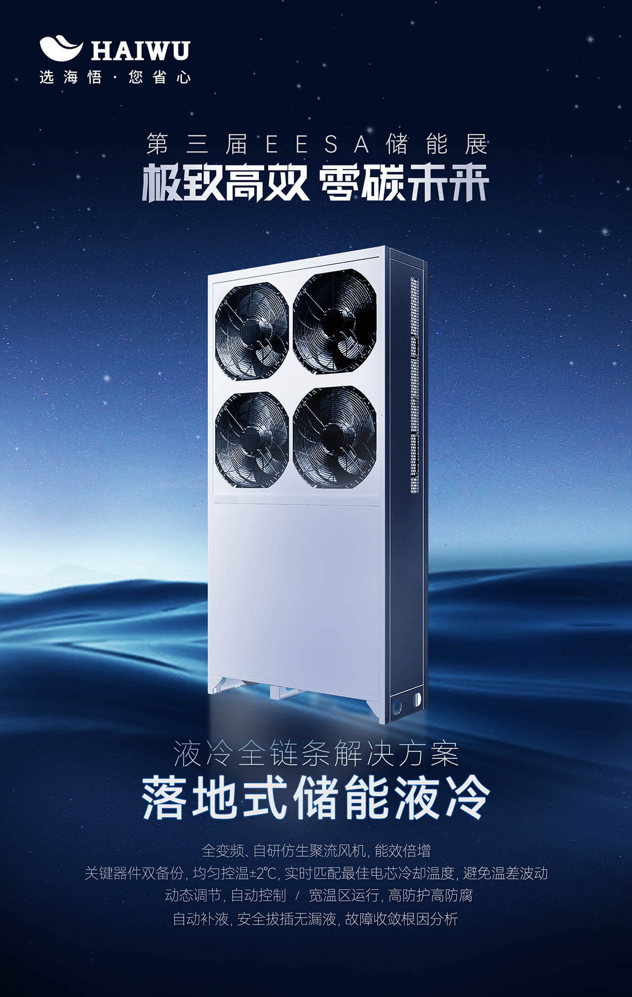 在金秋九月,以“綠色碳生態(tài)、智儲創(chuàng)時代”為主題的第三屆EESA儲能展于國家會展中心(上海)盛大啟幕,匯聚了全球儲能領(lǐng)域的精英與前沿技術(shù)。在這場儲能技術(shù)的盛宴中,海悟集團(tuán)憑借其深厚的行業(yè)積淀與前瞻性的技術(shù)視野,攜儲能液冷全鏈條解決方案及儲能風(fēng)冷溫控解決方案驚艷亮相,為儲能行業(yè)的快速發(fā)展注入了新的活力。