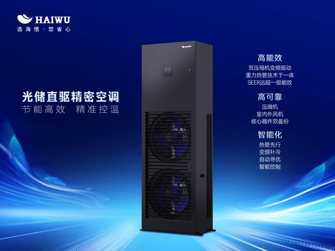 - 高能效:采用雙壓縮機變頻驅(qū)動與重力熱管技術(shù)深度融合,系統(tǒng)能效比(SEER)遠(yuǎn)超國家一級能效標(biāo)準(zhǔn),大幅降低能耗。