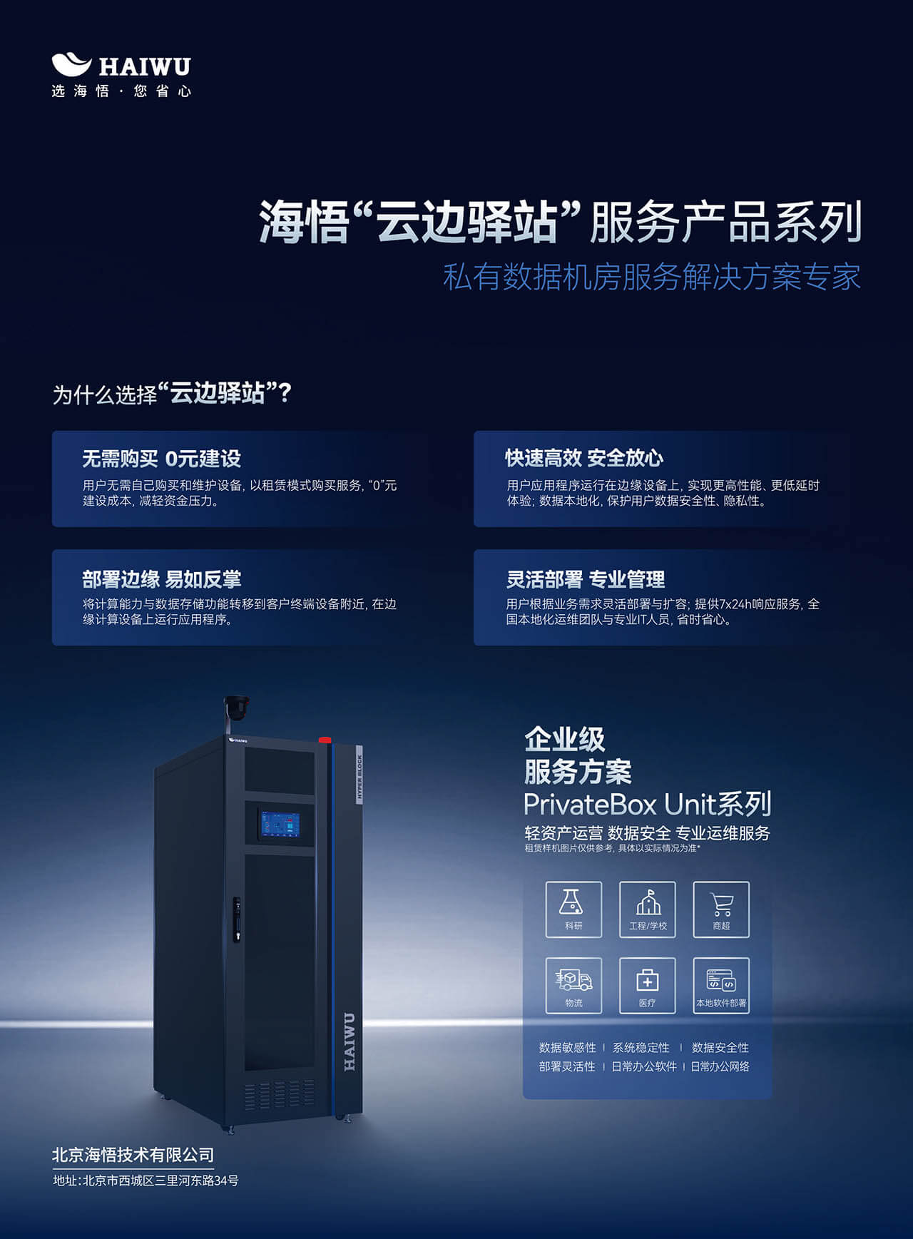 在數(shù)字化轉(zhuǎn)型的征途中,海悟云“云邊驛站”PrivateBox Block企業(yè)級本地化數(shù)據(jù)機(jī)房托管服務(wù)解決方案,以安全、高效、靈活、輕資產(chǎn)為核心優(yōu)勢,為中小企業(yè)量身打造了一站式數(shù)字化轉(zhuǎn)型解決方案。讓我們攜手并進(jìn),共創(chuàng)數(shù)字化未來!