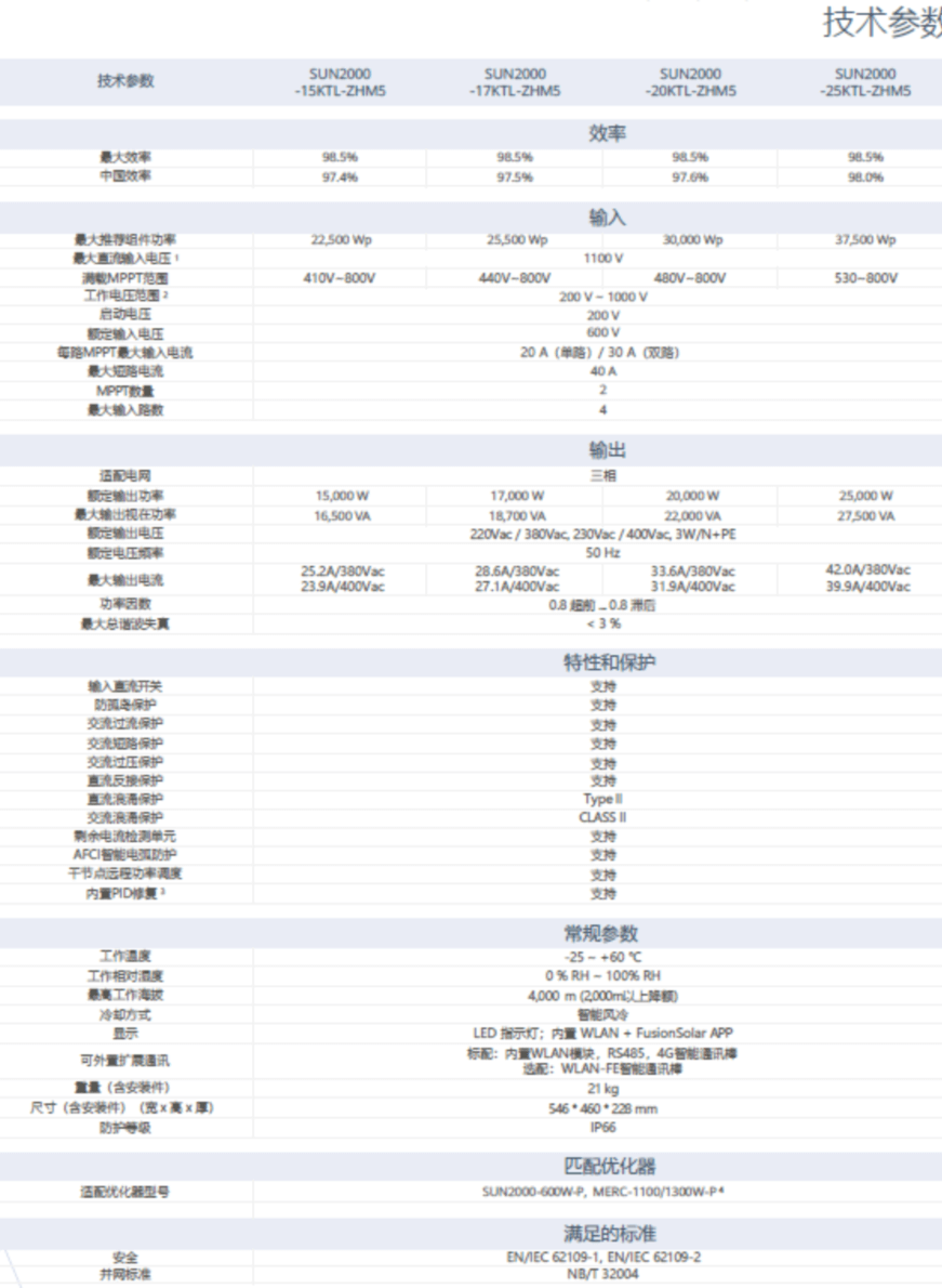 光伏并網(wǎng)逆變器選型:選用華為SUN2000-25KTL。