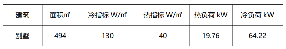 本工程為二層建筑,高9.6m,建筑面積為494㎡,采用海悟集團自產(chǎn)的熱泵作為冷熱源,進行供暖及制冷。