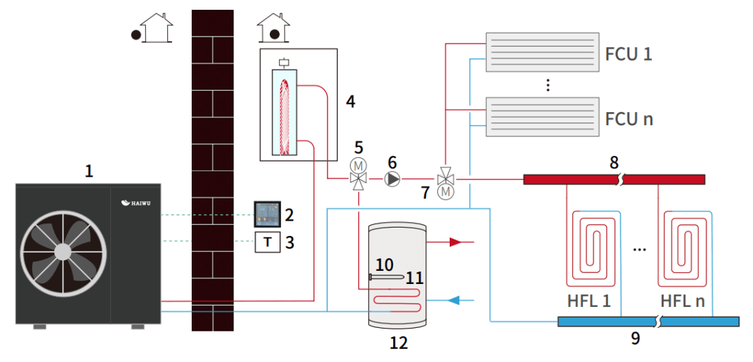 采用熱泵技術(shù)為住宅提供空調(diào)制冷和供暖;