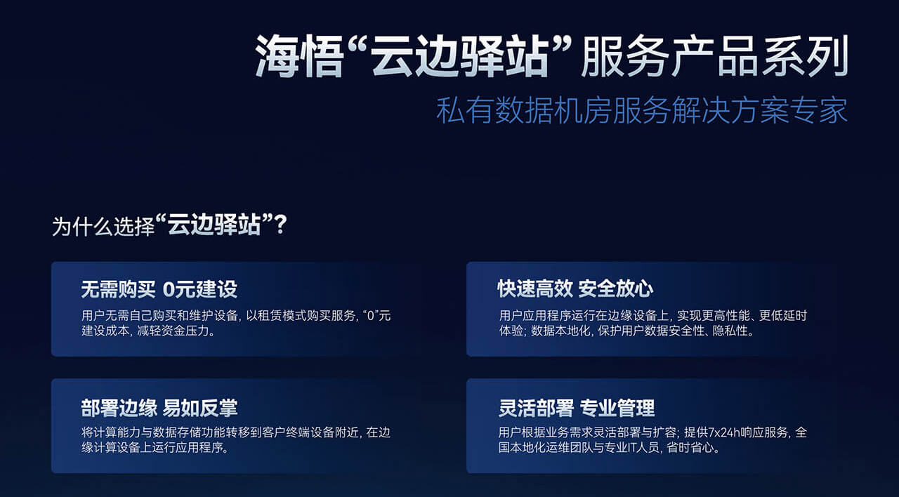 在采購模式方面,海悟云“云邊驛站”提供了靈活的資產(chǎn)歸屬和服務(wù)周期選擇。硬件資產(chǎn)歸屬海悟云,客戶接入設(shè)備部分歸屬客戶,既保證了設(shè)備的專業(yè)性,又降低了企業(yè)的投資風(fēng)險(xiǎn)。同時(shí),以3年為最短初始服務(wù)采購周期,企業(yè)可以根據(jù)自身需求靈活選擇服務(wù)期限。服務(wù)到期后,企業(yè)還可以選擇續(xù)租、購買或退還設(shè)備,進(jìn)一步降低了企業(yè)的成本負(fù)擔(dān)。
