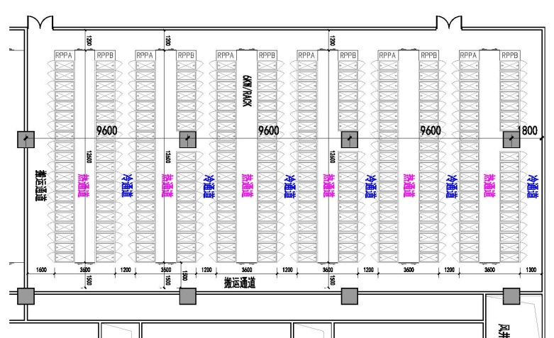 例如4.4kW-6kW/架機(jī)房柱網(wǎng)多選擇9.6米柱距,具體詳見(jiàn)下圖