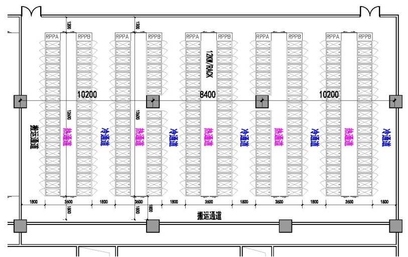 12kW/架機(jī)房根據(jù)冷通道寬度1.8米,柱網(wǎng)可為10.2米及8.4米相結(jié)合