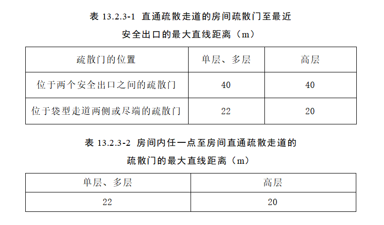 當(dāng)數(shù)據(jù)中心按照民用建筑設(shè)計(jì)時(shí),直通疏散走道的房間疏散門至最近安全出口的直線距離不應(yīng)大于表 13.2.3-1的規(guī)定。各房間內(nèi)任一點(diǎn)至房間疏散門的直線距離不應(yīng)大于表13.2.3-2的規(guī)定。建筑內(nèi)全部采用自動(dòng)滅火系統(tǒng)時(shí),采用自動(dòng)噴水滅火系統(tǒng)的區(qū)域,安全疏散距離可增加25%。