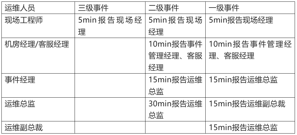 數(shù)據(jù)中心事件可以根據(jù)處理的不同情況,在不同的運(yùn)維團(tuán)隊間進(jìn)行升級,表2是數(shù)據(jù)中心事件升級定義的一個實例,讀者可以參考下面的升級實例,根據(jù)自己的情況進(jìn)行升級的定義和劃分,在實際事件升級中,沒有統(tǒng)一的強(qiáng)制標(biāo)準(zhǔn),是由具體的業(yè)務(wù)和管理要求決定的。