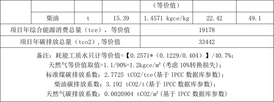 表5 項目綜合能源消耗計算及碳排放核算(天然氣發(fā)電)