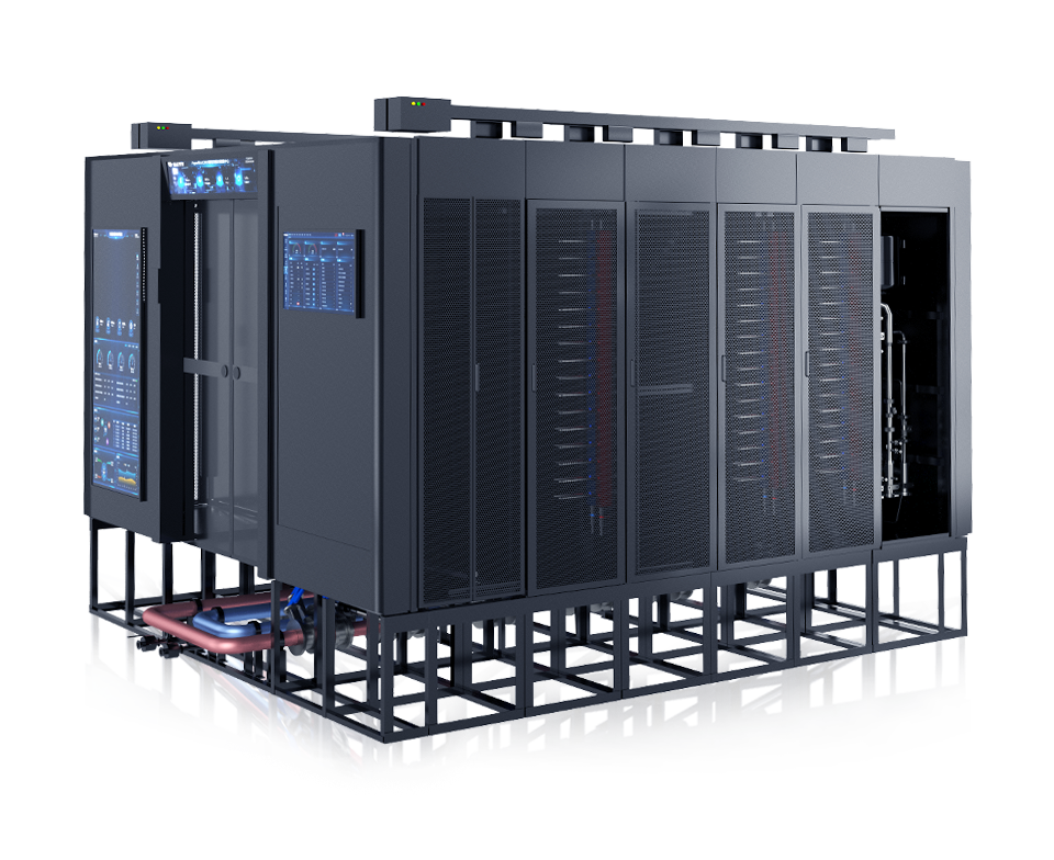 海悟液冷雙排數(shù)據(jù)中心解決方案以單個(gè)模塊為單位,采用模塊化設(shè)計(jì)理念,高集成高標(biāo)準(zhǔn)設(shè)計(jì),整合IT機(jī)柜、配電單元、封閉組件、制冷單元、預(yù)制二次管路、布線(xiàn)、綜合運(yùn)維等功能獨(dú)立的單元,實(shí)現(xiàn)數(shù)據(jù)中心的完整功能。液冷單個(gè)模塊組件全部在工廠(chǎng)預(yù)制安裝、調(diào)試,可靈活拆卸、搬運(yùn),即節(jié)約機(jī)房空間又可靈活擴(kuò)展,實(shí)現(xiàn)現(xiàn)場(chǎng)批量快速部署,提供PUE≤1.15的高功率密度場(chǎng)景的綠色節(jié)能解決方案。