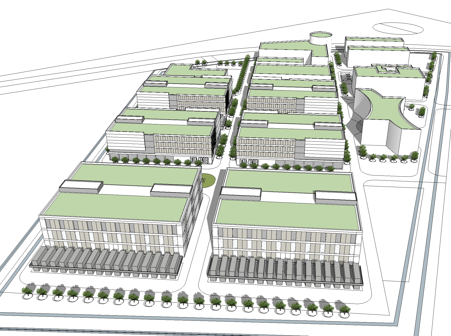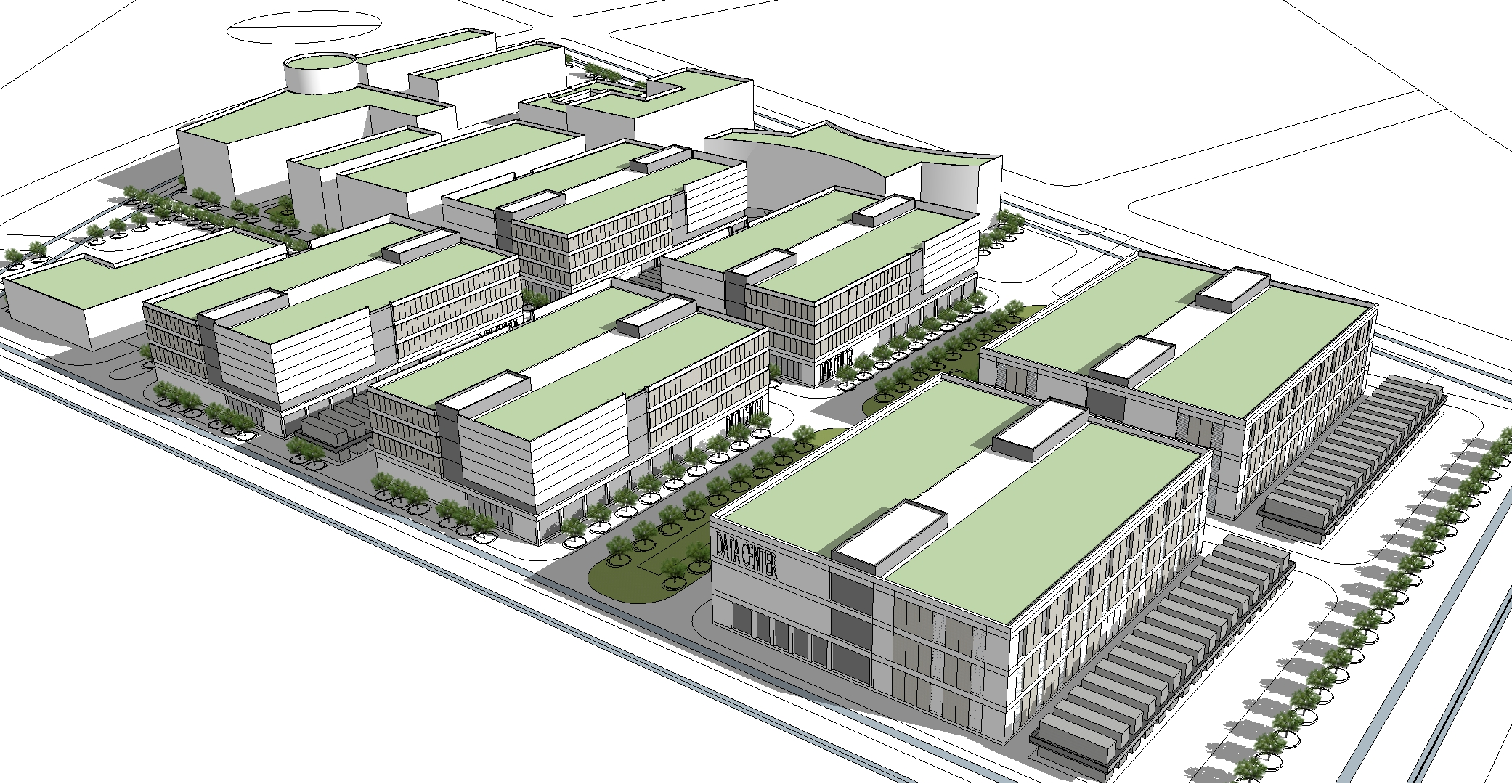 本項目園區(qū)位于南京,總用地面積132397.65m² ,總建筑面積184535.82m²,共設(shè)計6棟數(shù)據(jù)中心(其中4棟采用水冷方案,2棟采用間接蒸發(fā)方案)、2棟宿舍樓、1棟研發(fā)樓、1棟運(yùn)維管理中心、1棟綜合服務(wù)中心、1棟行政辦公樓、1棟作為220kV變電站。