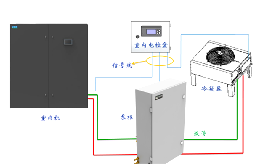 使常規(guī)風(fēng)冷精密空調(diào)具備氟泵功能; 室外溫度較低時充分利用自然冷源,實現(xiàn)節(jié)能效果;